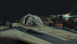During the attack scene, we can actually see Tallie’s A-Wing as it is slid across the deck, slamming into the bulkhead before the blast doors automatically sealed.