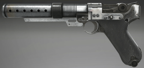 Han Solo’s iconic DL-44 Blaster was based on a WW2 C96 Mauser. It too, featured heavy modifications with a muzzle device, a heat sink in front of the mag well, and a side mounted targeting scope.