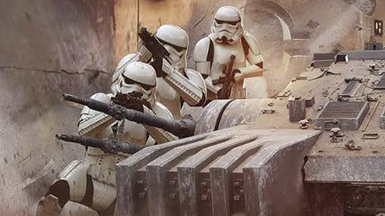 In Rogue One A Star Wars Story, we see a squad of Stormtroopers serving as a dismounted patrol around an Imperial Assault tank.