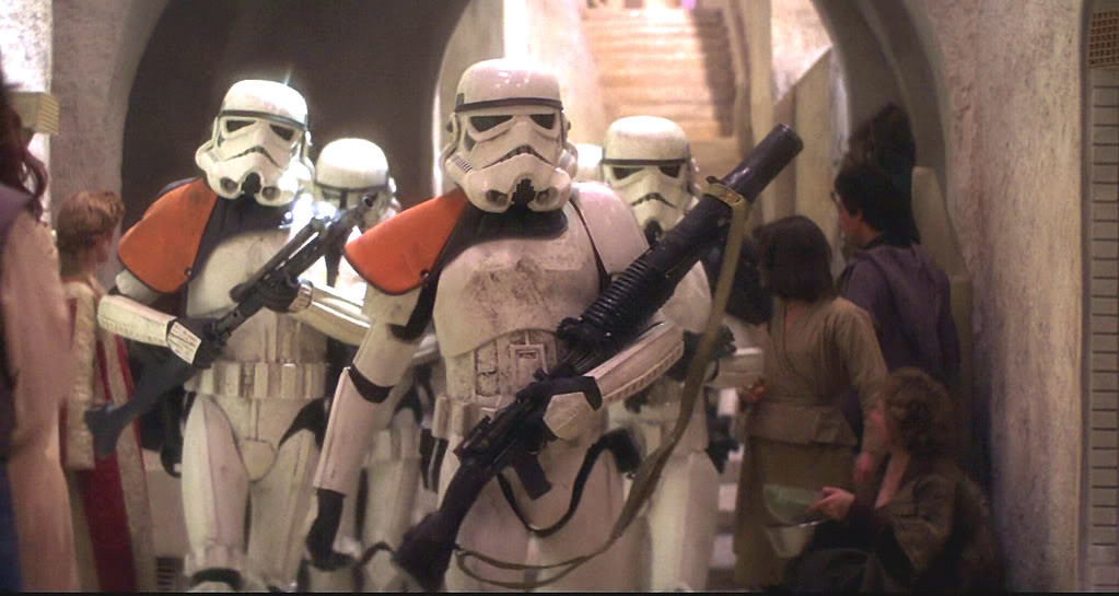 The Stormtroopers patrolling Mos Eisley were all armed with modified MG34s, MG42s, and at least one trooper with a modified Lewis Machine gun.
